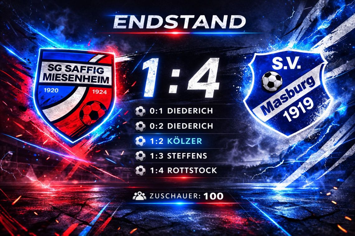 Unsere SG Saffig/Miesenheim musste im zweiten Spiel des Jahres 2026 erneut eine Niederlage hinnehmen. Gegen den SV Masburg unterlag die SGSM auf heimischem Platz mit 1:4. Die Gäste erwischten dabei einen Blitzstart. Bereits nach 80 Sekunden brachte Niklas Diederich den SV Masburg mit 0:1 in Führung (2.). In der Folge fand unsere SGSM besser in die Partie und konnte mehr Spielanteile verbuchen, ohne jedoch zwingend genug Torchancen zu kreieren. Nach einem schnellen Konter erhöhte erneut Niklas Diederich in der 34. Minute auf 0:2. Kurz vor der Halbzeit gelang der SGSM jedoch der wichtige Anschlusstreffer. Ein Freistoß aus dem Halbfeld wurde…
