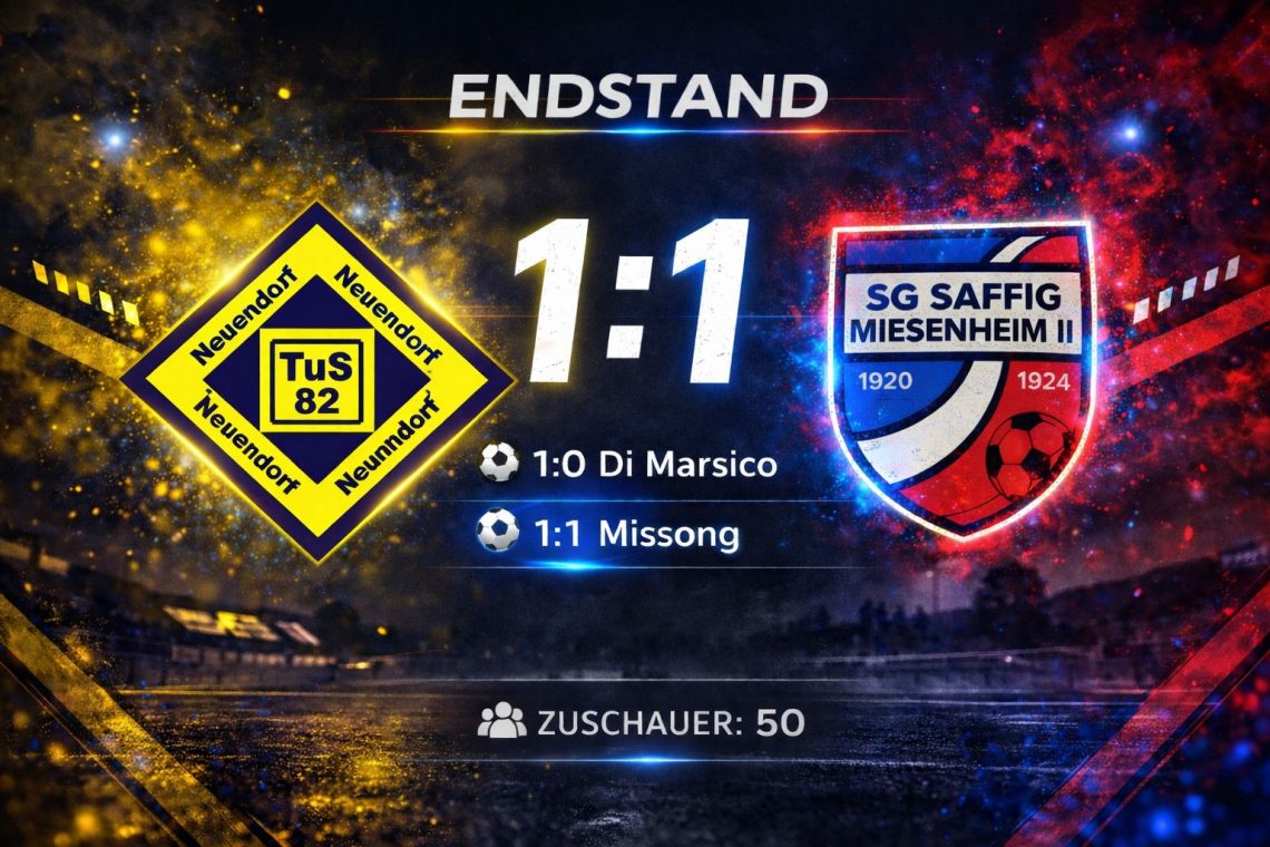 Unsere zweite Mannschaft bleibt weiter in guter Form und ist nun seit sechs Spielen ungeschlagen. Beim Auswärtsspiel beim TuS Neuendorf erkämpfte sich die SG Saffig/Miesenheim II ein 1:1-Unentschieden und nimmt damit einen wichtigen Punkt mit nach Hause. Die Partie begann allerdings denkbar ungünstig für unsere SG. Bereits nach nicht einmal zwei Minuten brachte David Di Marsico die Gastgeber früh mit 1:0 in Führung. Die SGSM II ließ sich davon jedoch nicht aus der Ruhe bringen und arbeitete sich immer besser in die Partie. Nach 25 Minuten wurde der Einsatz belohnt: Bastian Missong erzielte den verdienten Ausgleich zum 1:1 und traf…