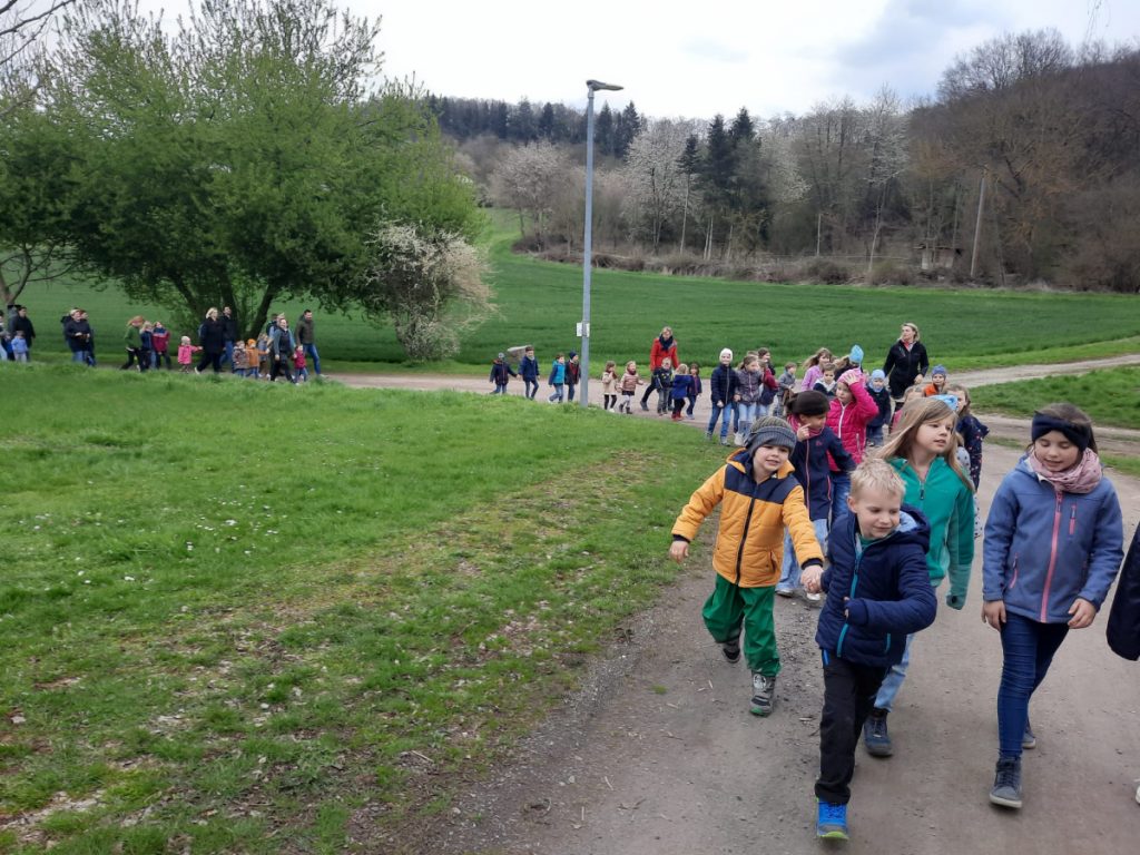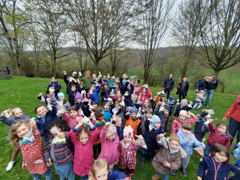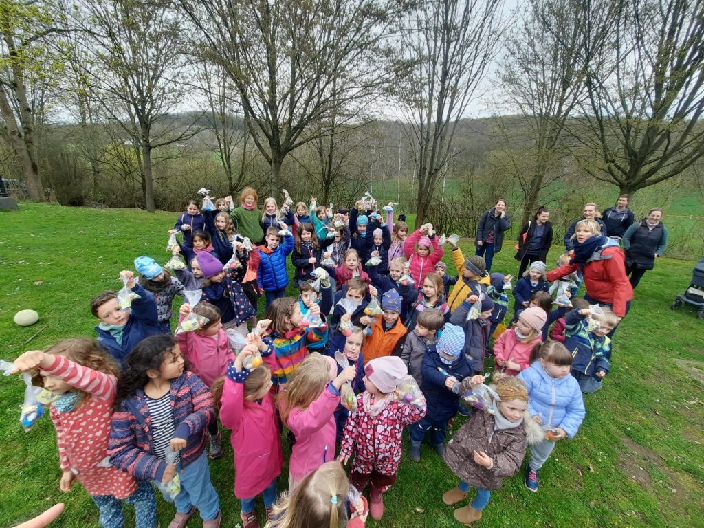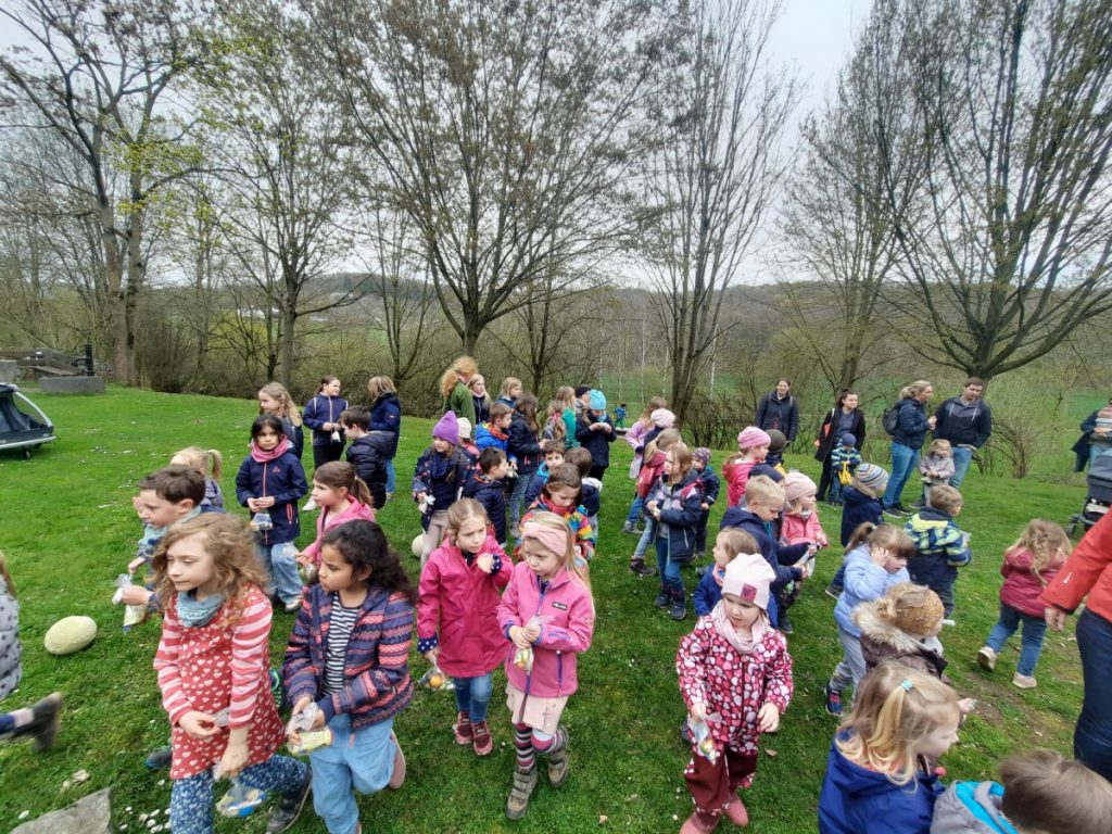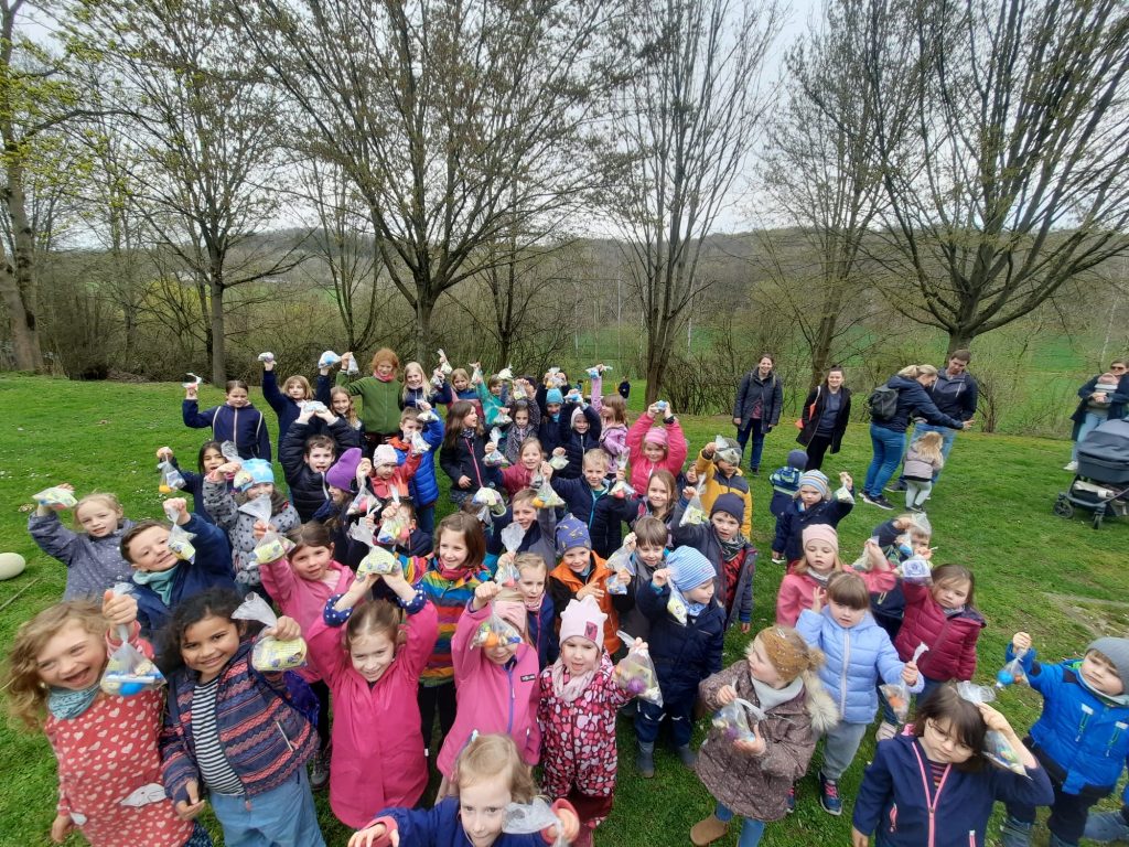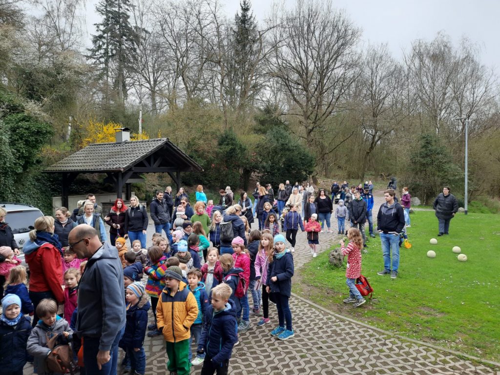 Zusammen mit den Eltern ging es anschließend per „Volkswandertag“ in Richtung Begegnungsstätte. Hier mussten die Kinder im Umfeld der Grillstätte die gut versteckten Nester des Osterhasen ausfindig machen. Dabei gab es keine großen Probleme und für jedes Kind eine süße Überraschung.