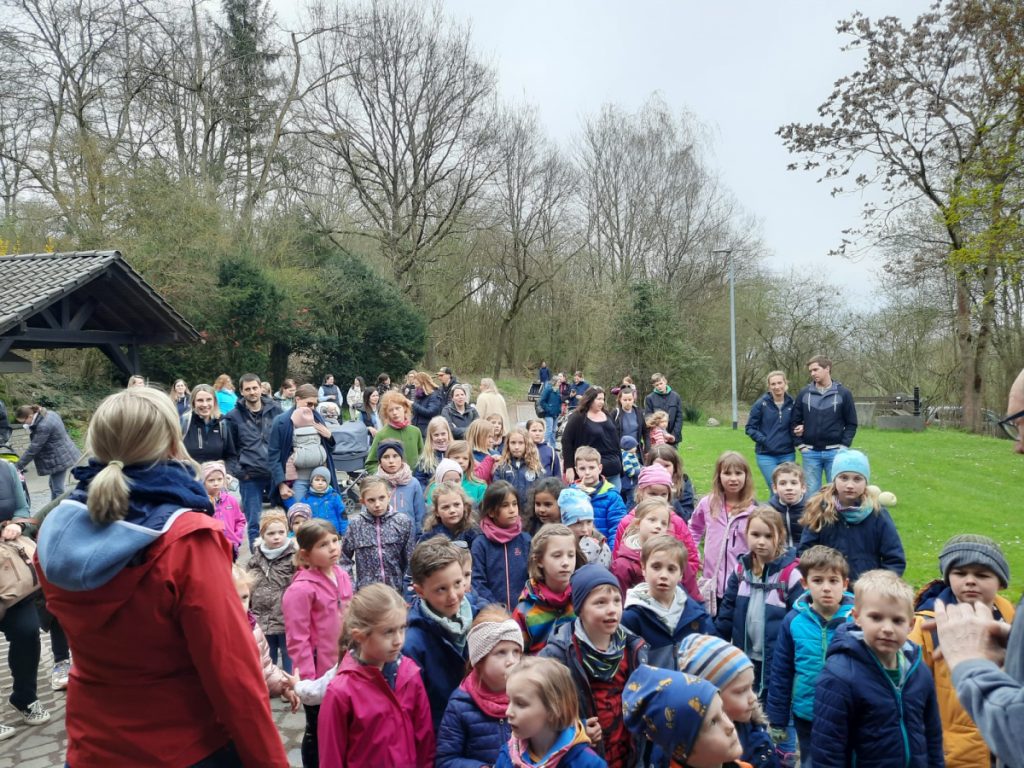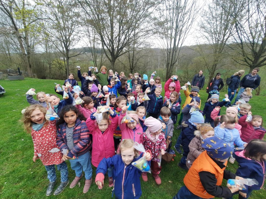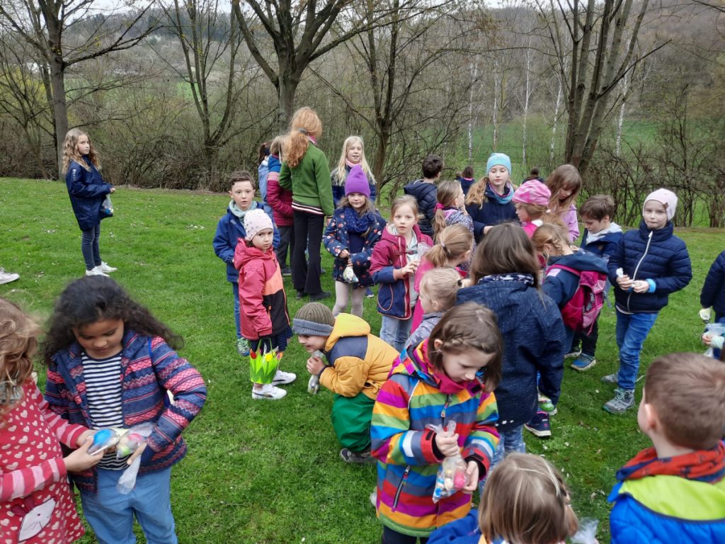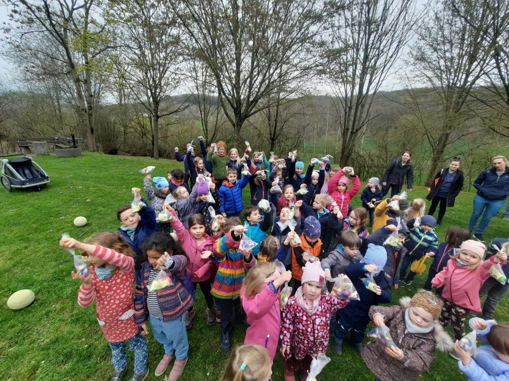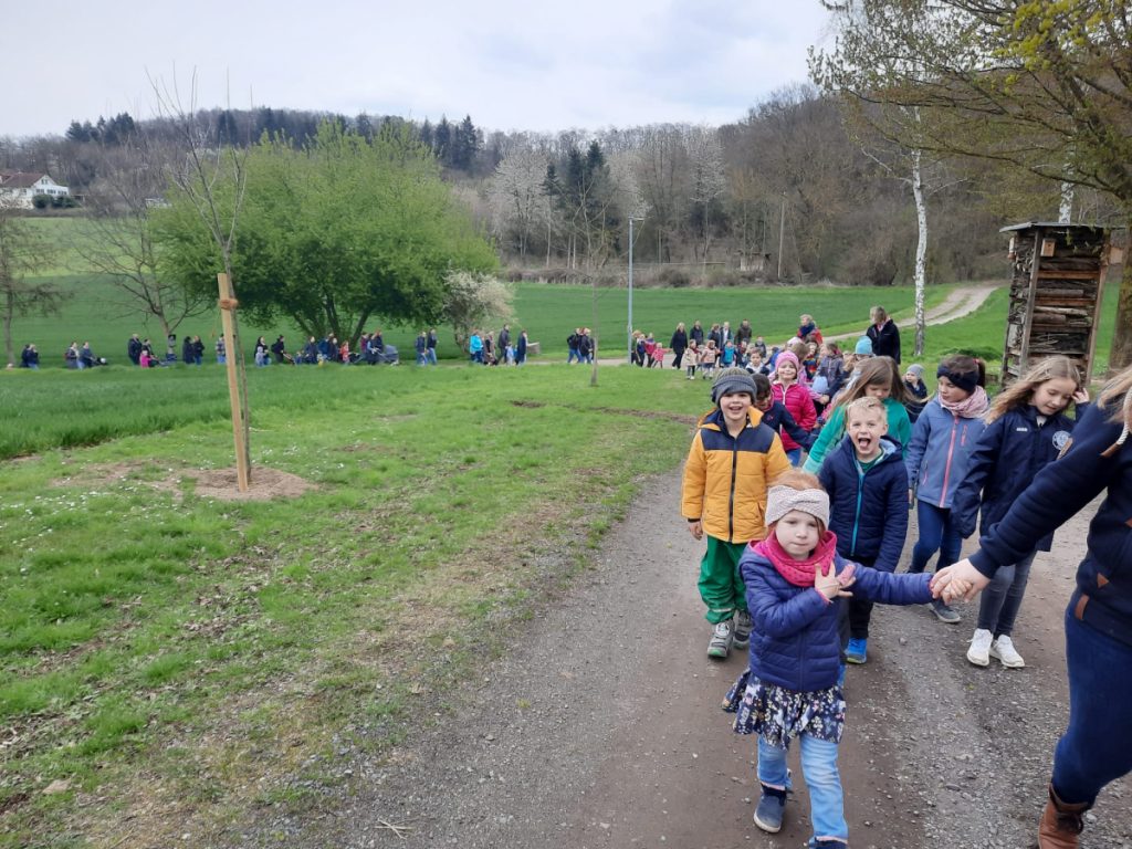 Zusammen mit den Eltern ging es anschließend per „Volkswandertag“ in Richtung Begegnungsstätte. Hier mussten die Kinder im Umfeld der Grillstätte die gut versteckten Nester des Osterhasen ausfindig machen. Dabei gab es keine großen Probleme und für jedes Kind eine süße Überraschung.