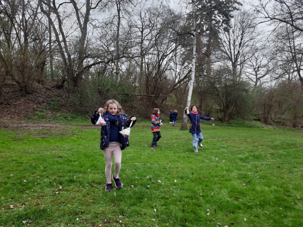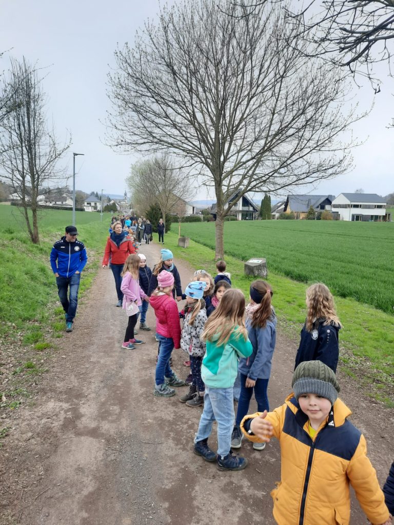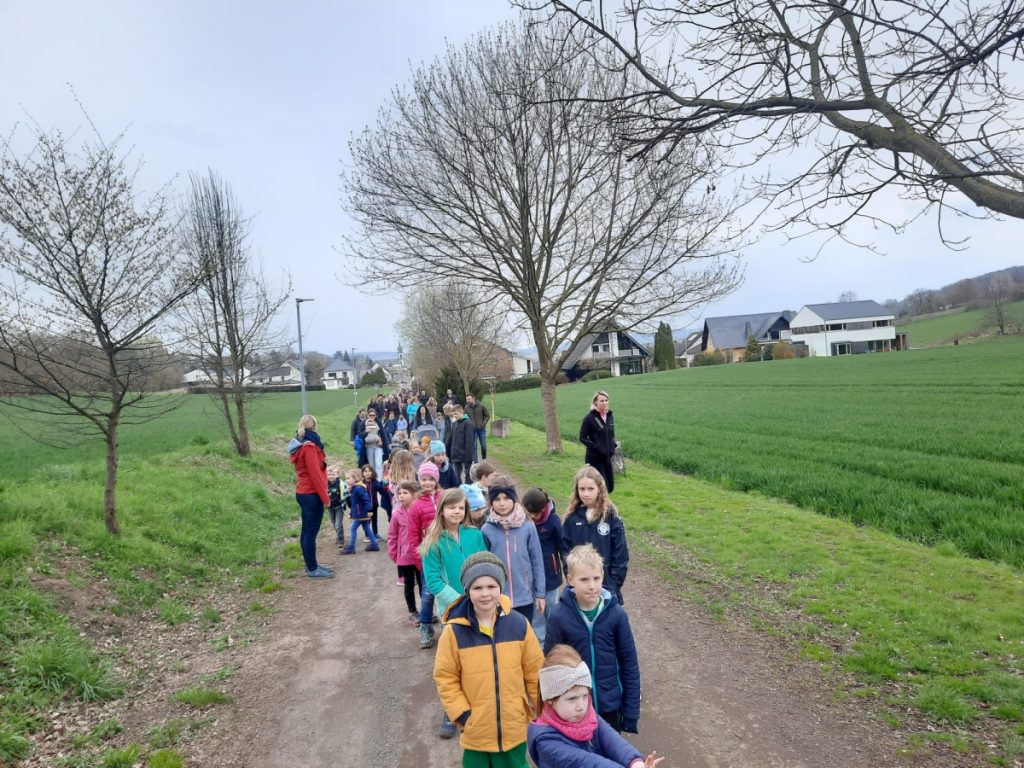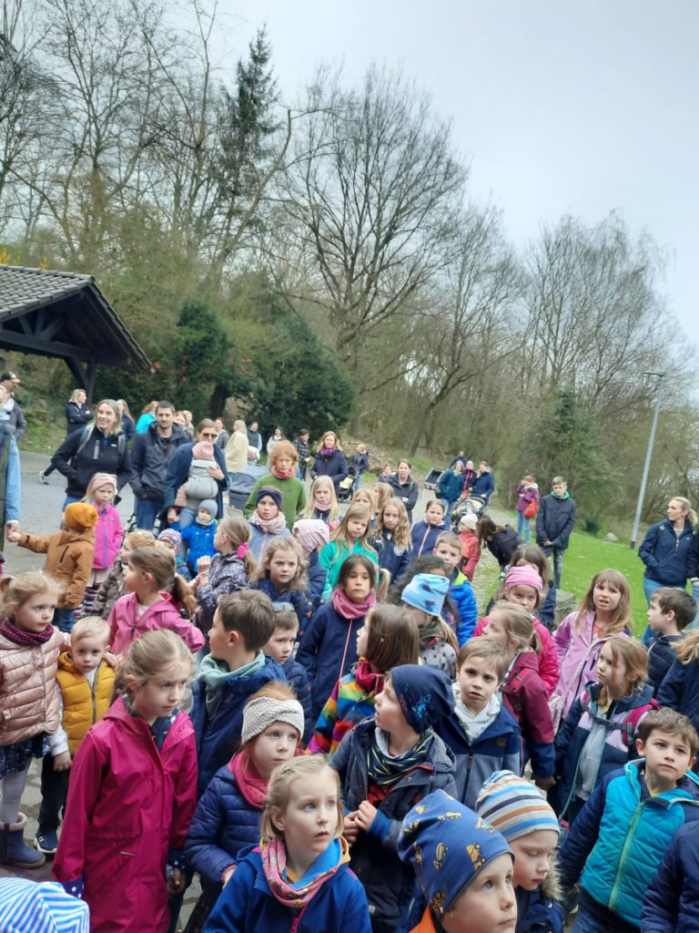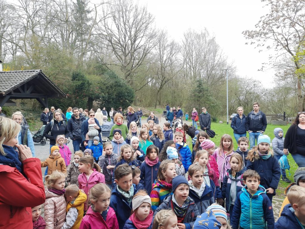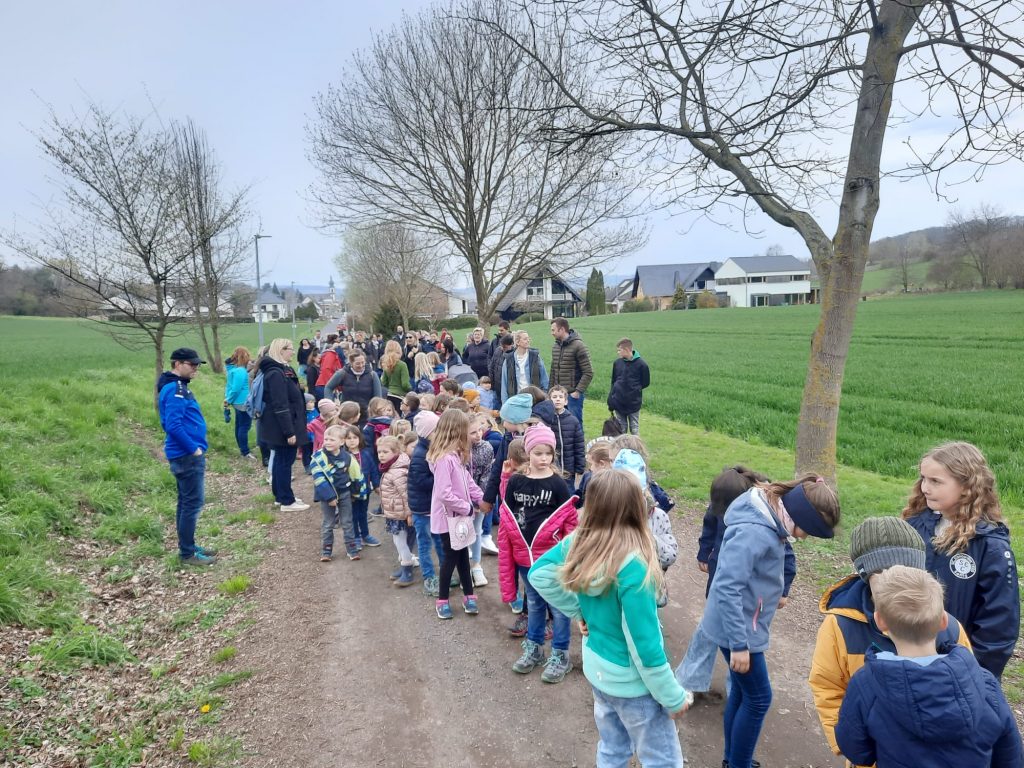 Zusammen mit den Eltern ging es anschließend per „Volkswandertag“ in Richtung Begegnungsstätte. Hier mussten die Kinder im Umfeld der Grillstätte die gut versteckten Nester des Osterhasen ausfindig machen. Dabei gab es keine großen Probleme und für jedes Kind eine süße Überraschung.