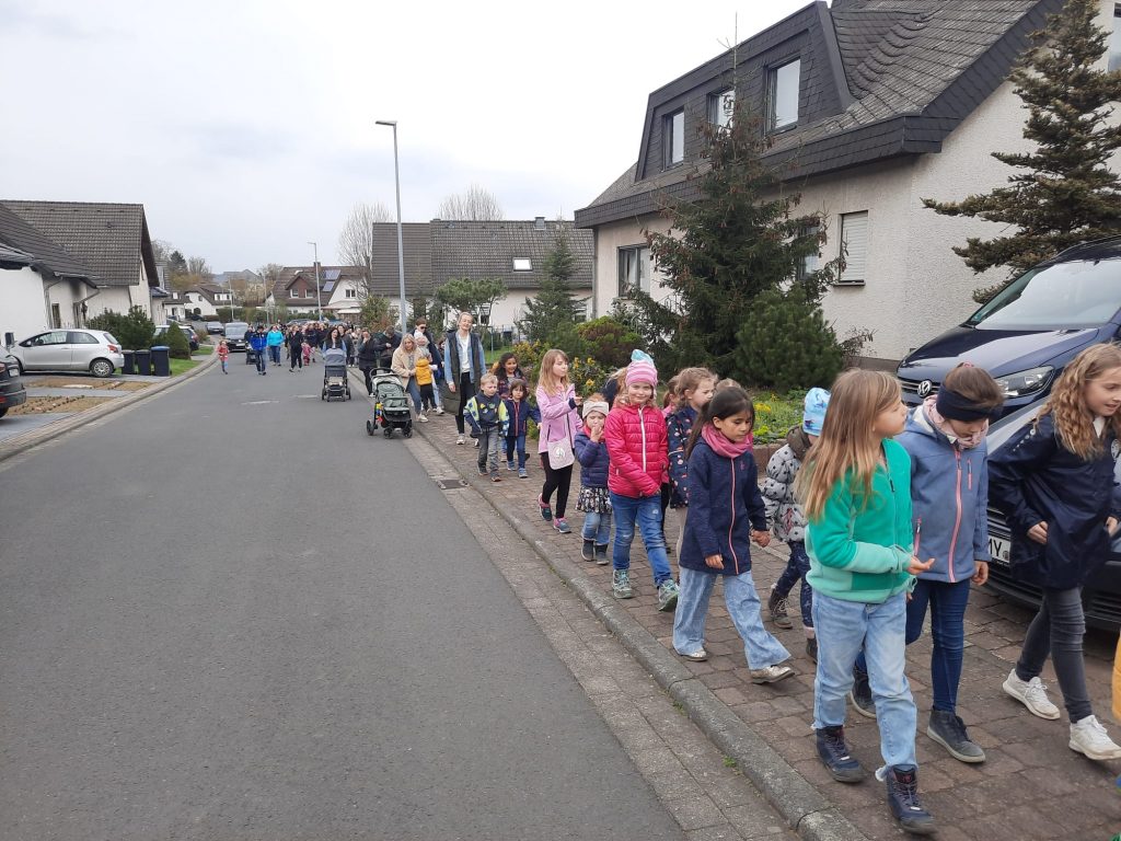 Über 70 Kinder versammelten sich beim Treffpunkt auf dem Spielplatz an der Baltasar-Neumann-Straße.
