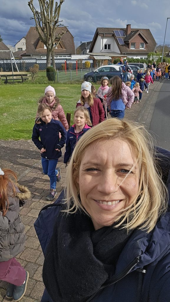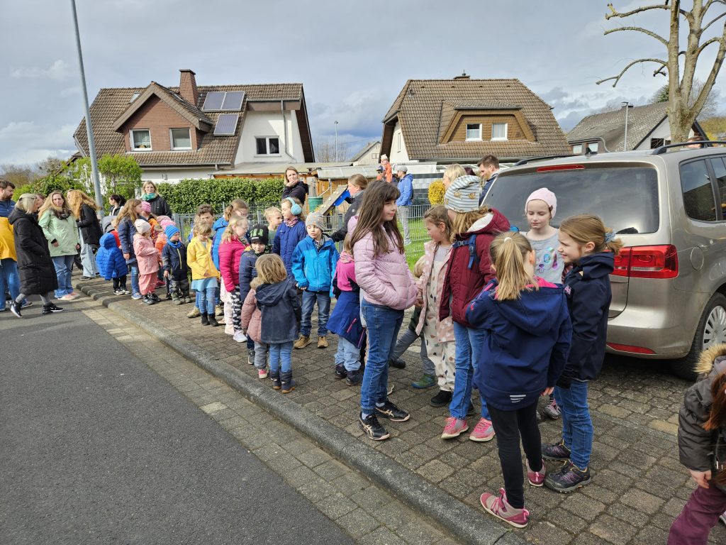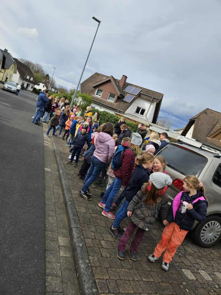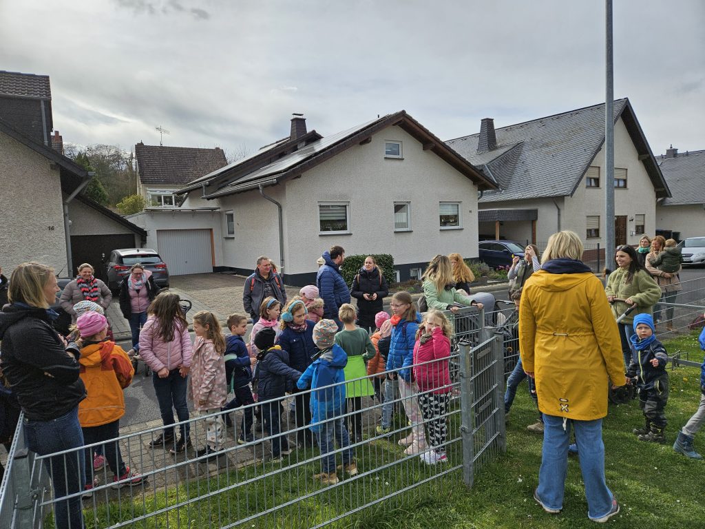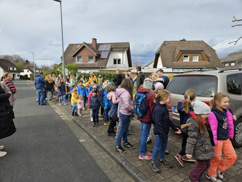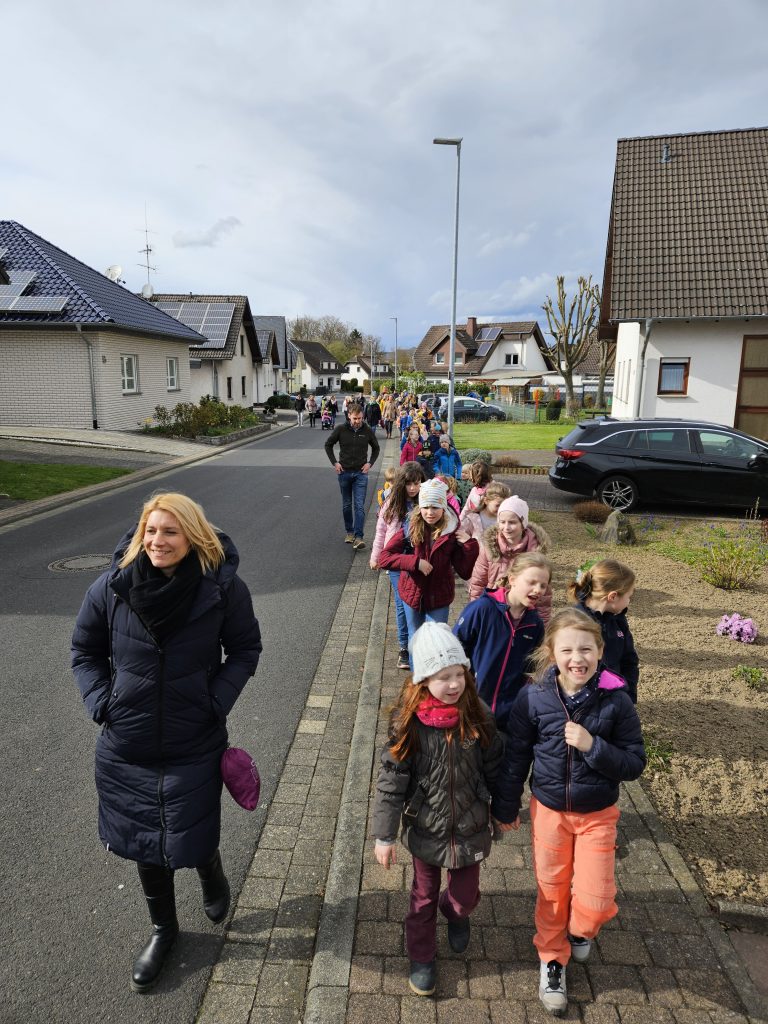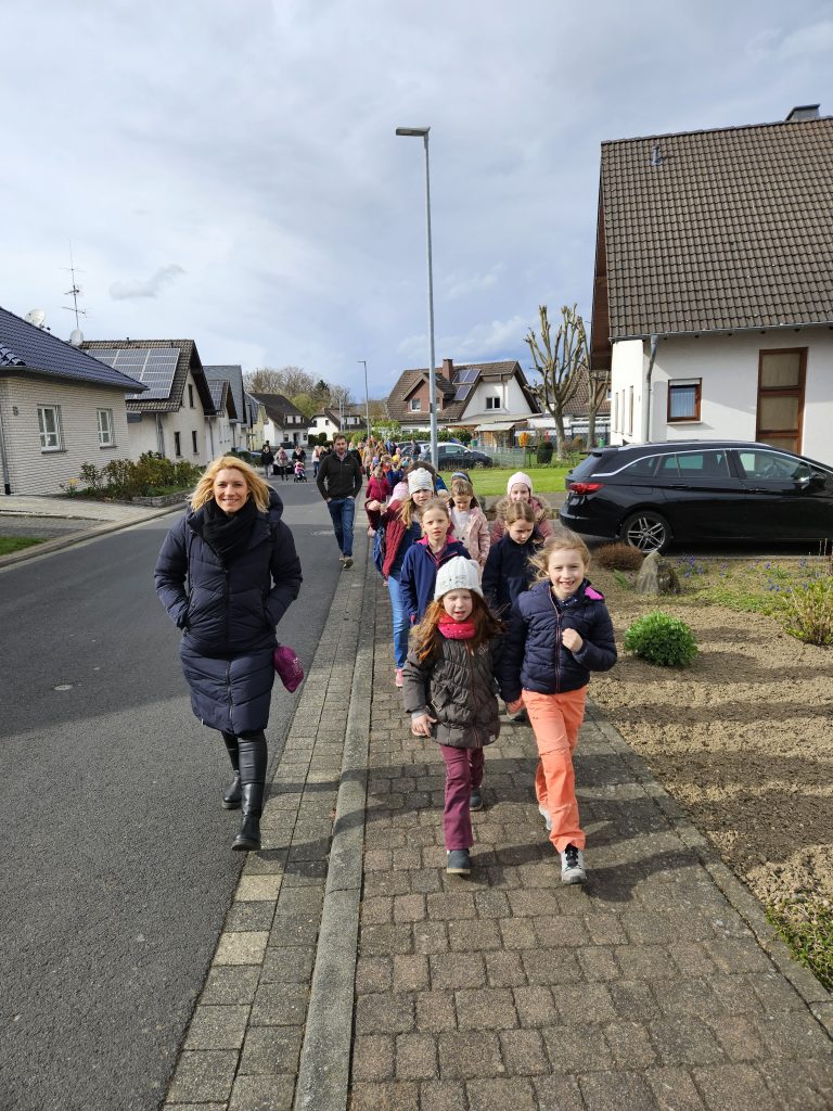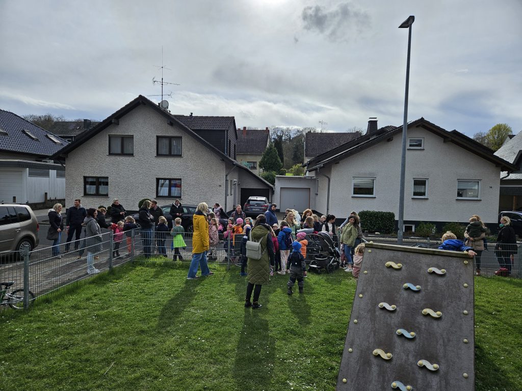 Zirka 50 Kinder versammelten sich mit Ihren Eltern am Treffpunkt auf dem Spielplatz in der Baltasar-Neumann-Straße.
