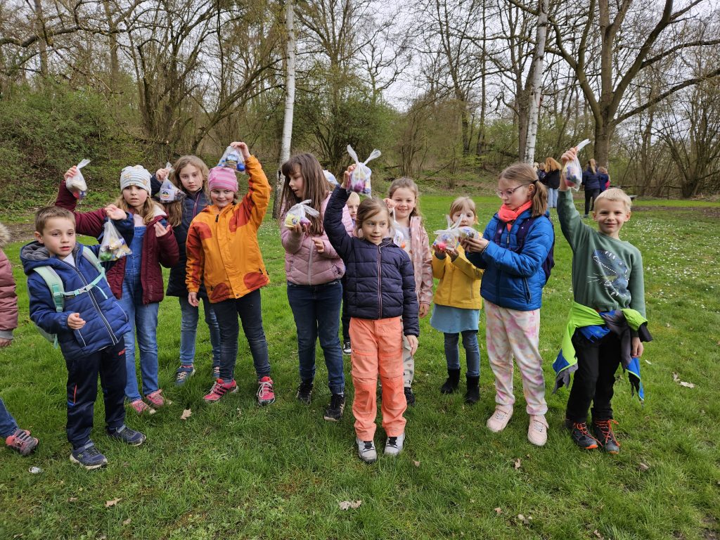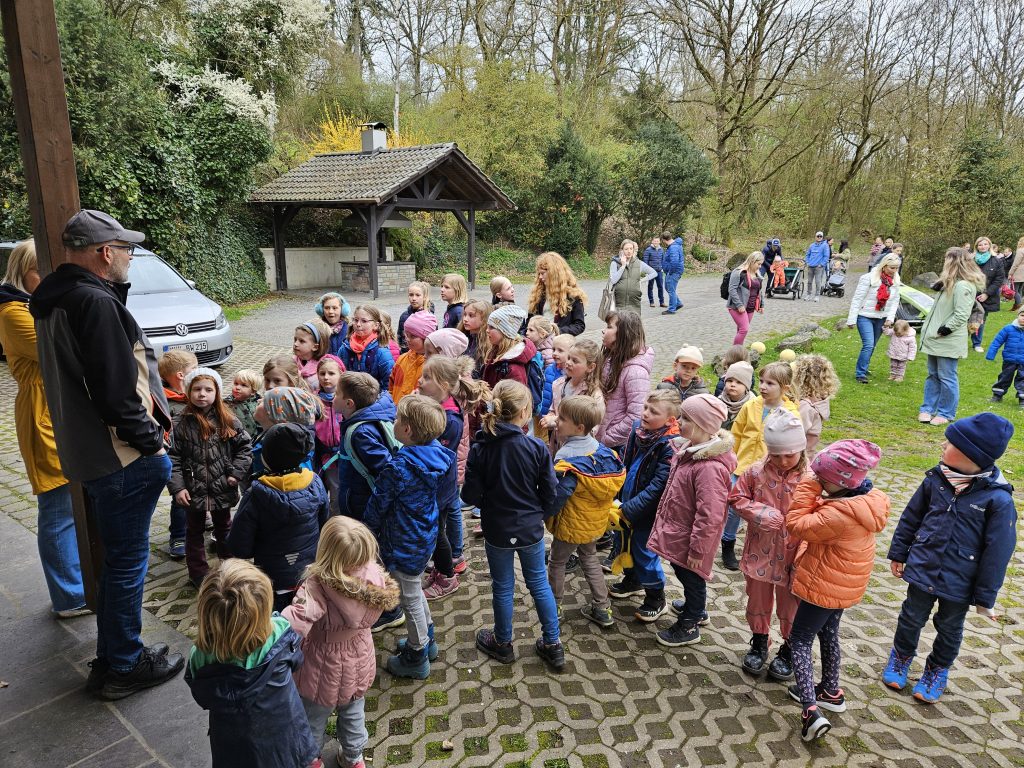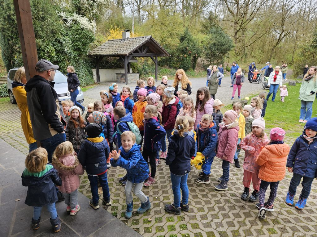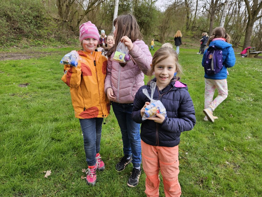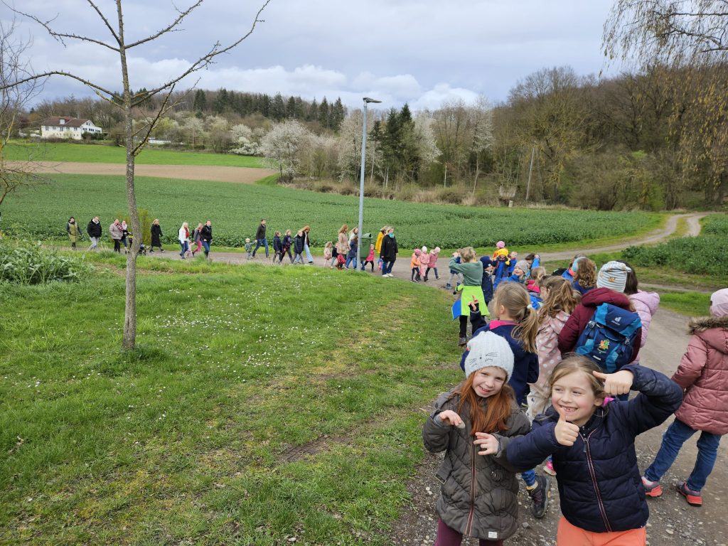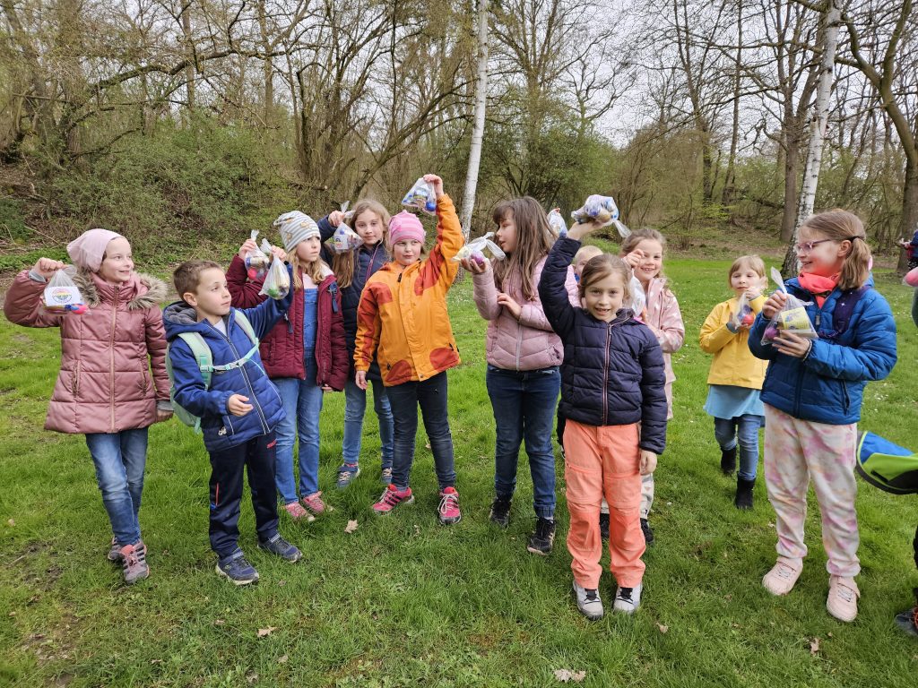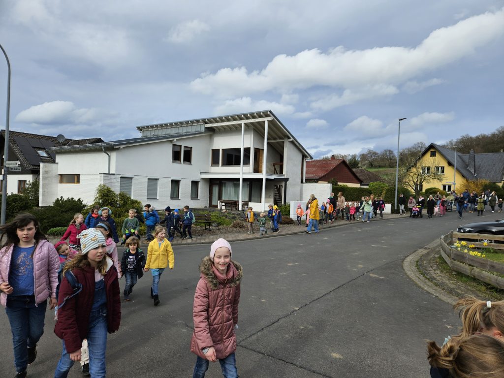 Zusammen ging es für Groß und Klein anschließend per „Volkswandertag“ in Richtung Begegnungsstätte. Hier mussten die Kinder im Umfeld der Grillstätte die gut versteckten Nester des Osterhasen ausfindig machen. Dabei gab es keine großen Probleme und für jedes Kind eine süße Überraschung.